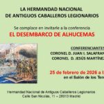 La Hermandad National de Antiguos Caballeros Legionarios, invita a la conferencia que tendra lugar el dia 25 de febrero, a las 18:00 horas, en el Salon de los Tercios de la Hermandad, titulada: