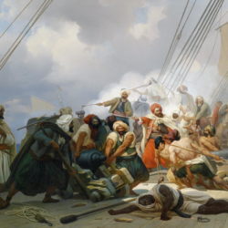 Los piratas berberiscos, llamados también de forma algo confusa “corsarios otomanos”, constituían un grupo heterogéneo de piratas y corsarios musulmanes que actuaban desde las costas del norte y noroeste africano, donde habían instalado sus bases. Actuaban fundamentalmente desde Túnez, Argelia y Marruecos, acosando el tráfico marítimo en el Mediterráneo occidental y asediando de manera muy concreta a los archipiélagos y sus poblaciones, desde Canarias a Creta. Un problema que cobró especial importante tras la caída de Constantinopla a manos de los otomanos en 1453 a causa de la pérdida de buena parte del control del espacio marítimo que las coronas occidentales habían venido sosteniendo. Tal llegó a ser la osadía de las flotillas berberiscas que incluso saqueaban las localidades costeras y esclavizaban a sus habitantes, lo cual motivó que muchas de ellas sufrieran un fuerte despoblamiento motivado por el miedo hacia estas incursiones. Y no fue solo un problema de la Europa sureña. Los berberiscos llegaron a desplegar sus razias incluso en Gran Bretaña, Irlanda, los Países Bajos y lugares tan remotos como Islandia.