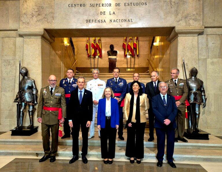 Autoridades que presidieron el acto y nuestro contertulio en la entrada del CESEDEN ABAD1 Sizes: 150 × 150 / 300 × 232 / 250 × 250 / 600 × 400 / 300 × 200 / 400 × 200 / 130 × 90 / 648 × 500 / 272 × 182 / 768 × 593