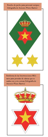 Igualmente destaca que el personal español, en el uniforme de servicio y maniobras lleva un rombo, posiblemente verde, cosido en el jersey, así como las divisas de su empleo. Aunque algún autor ha identificado erróneamente los distintivos con los de las mehalIas jalifianas, realmente son los correspondientes a las intervenciones militares cuyo diseño se publicó en abril de 1926. Esta misma insignia, metálica, puede verse en los cuellos del uniforme de gala o en las diversas prendas de cabeza bien bajo corona, bien sin ella.